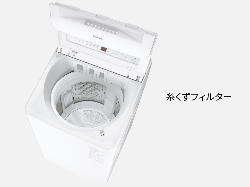 パナソニックの糸くずフィルターは、細かい網目と大容量サイズ(約160 mL)を採用。さらに洗濯槽内の2か所(FAシリーズのみ)に配置することで、洗濯中に出る糸くずをしっかりキャッチします。
